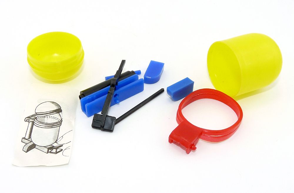 Der Abfalleimer. Ungebaut und komplett mit Zettel und Ei Kapsel
