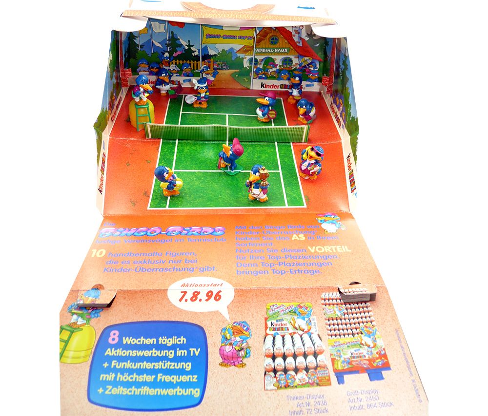 Diorama der Bingo Birds. Design ist eine Tennistasche, die alle Figuren der Serie beinhaltet