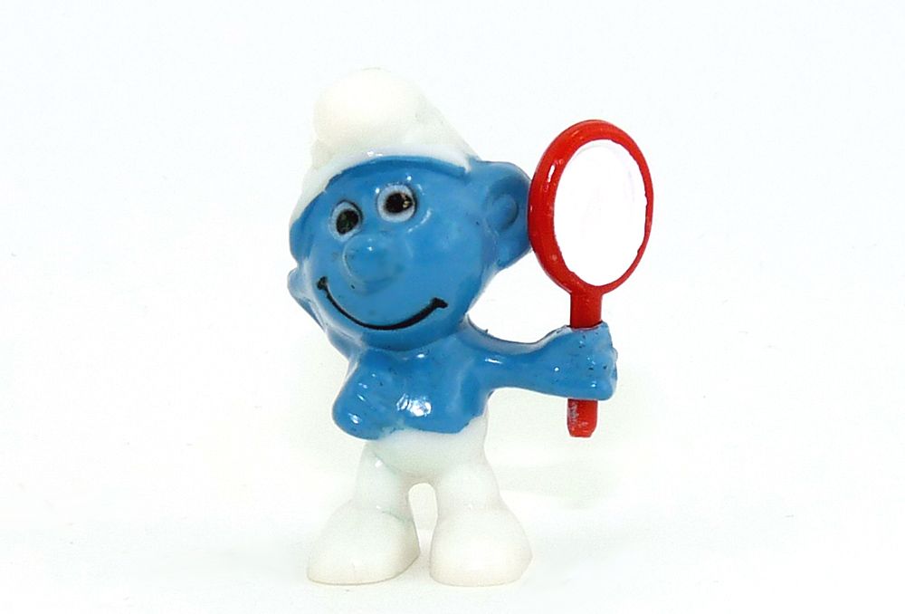 Eitelkeitsschlumpf mit bemalter Spiegelfläche und dünnem Griff