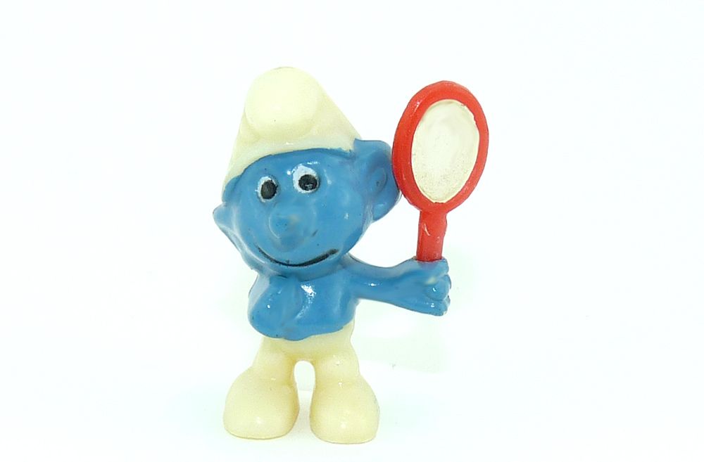 Eitelkeitsschlumpf mit Spiegel. Spiegelfläche bemalt und der Spiegel hat einen Gußabdruck