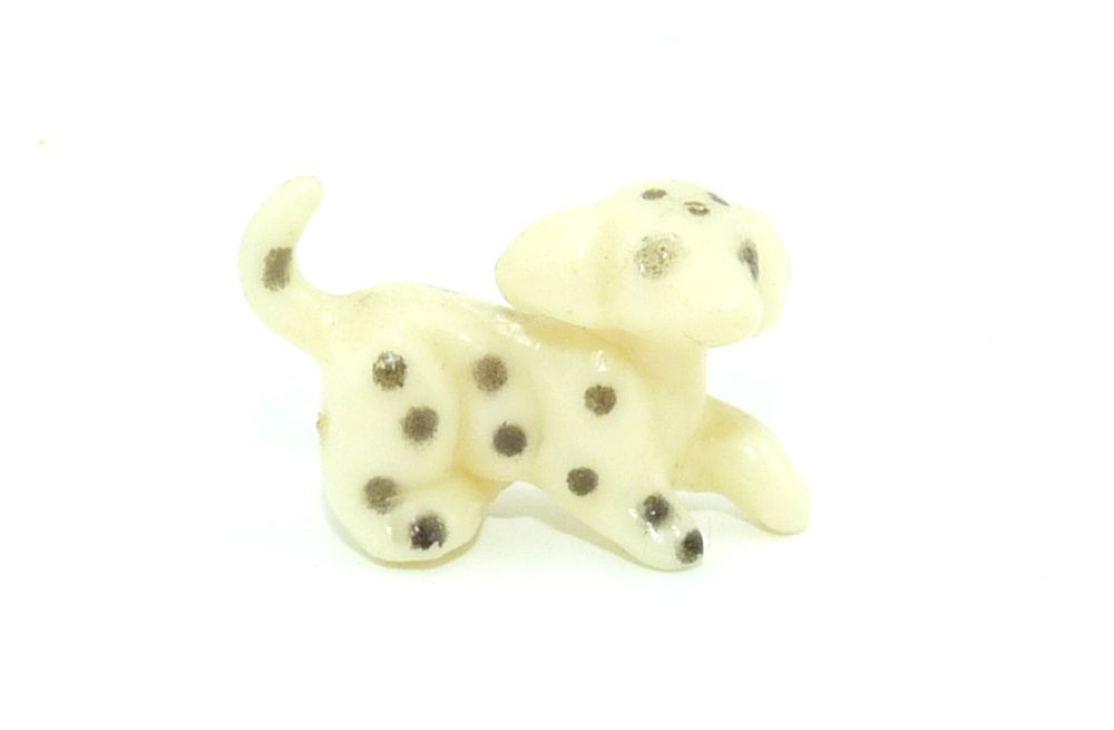 Kleine Hundefigur aus weißem Grundmaterial und mit schwarzen Punkten