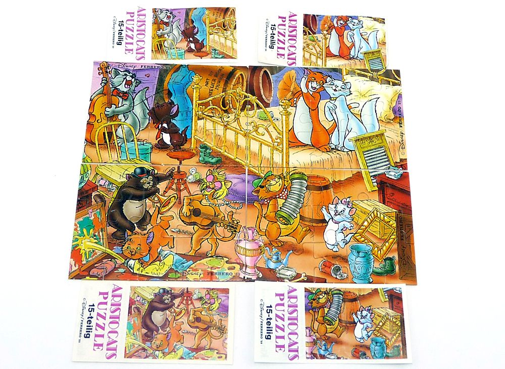 Komplettpuzzle der Aristocats mit allen 4 Beipackzettel. Alle 60 Teile vom Superpuzzle