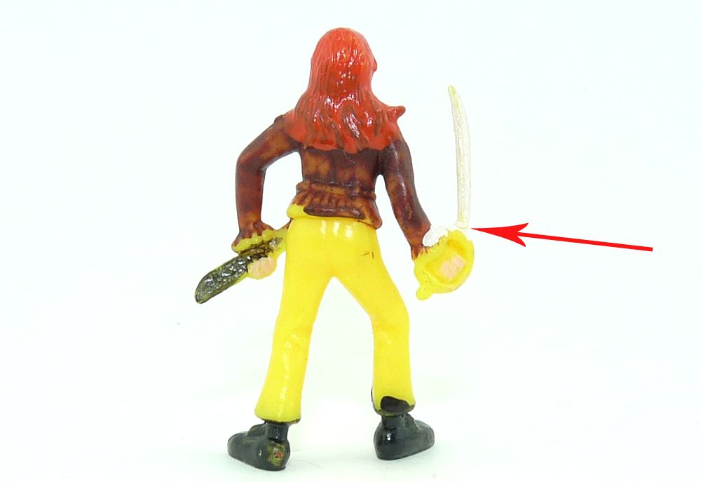 Pirat mit Säbel aus gelben Grundmaterial. Säbel mit Haarriss