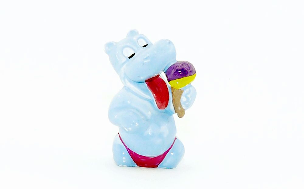 Beschreibung Die ersten Happy Hippo Figuren waren noch mit dünner hellblauer Farbe bemalt.