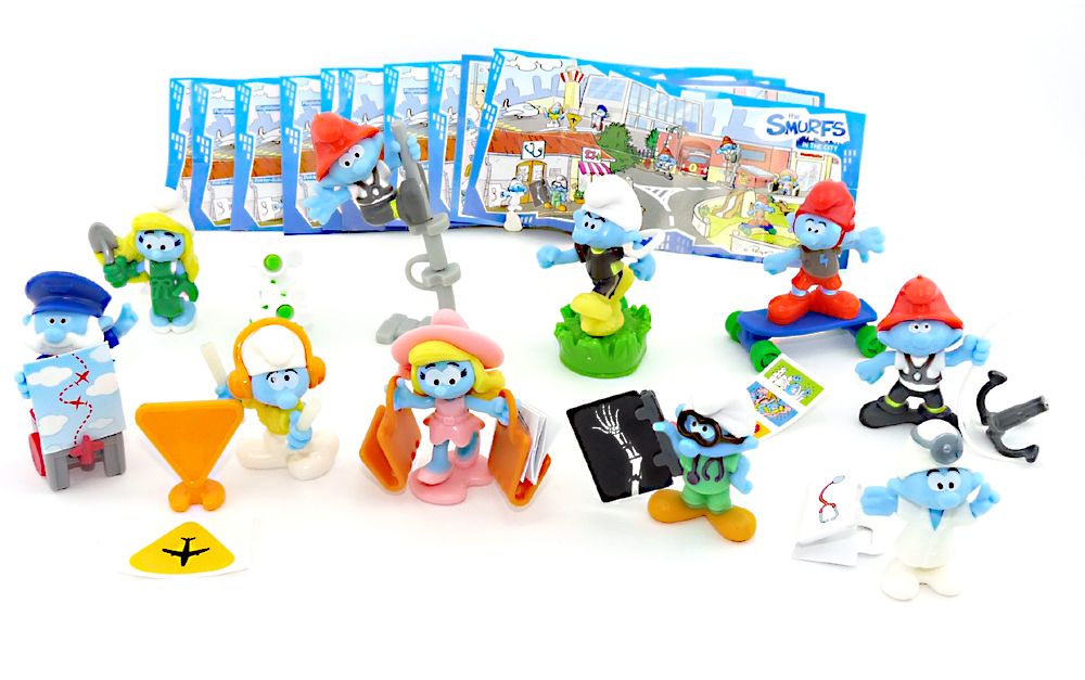Schlümpfe in der City 2018 mit fünf neutralen und fünf deutschen Beipackzetteln (Komplettsatz)