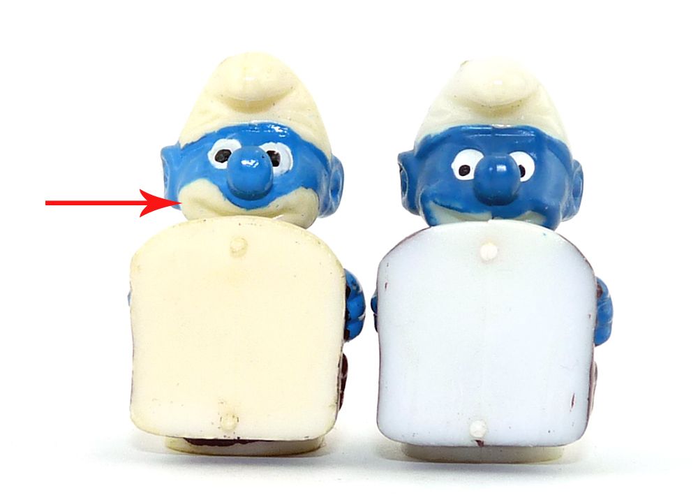 Schokokuss - Schlumpf in anderer Ausführung. Blauton = heller, Schaumkuss oben nicht braun bemalt, Mund sehr groß