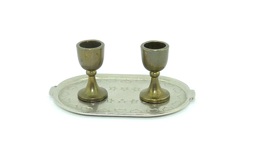 Silbertablett mit zwei Messing Gläser (Metallfiguren)