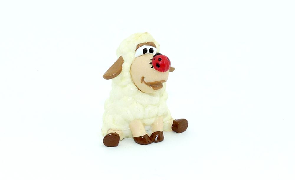 Beschreibung Das Schaf hat einen Marienkäfer auf der Nasenspitze.